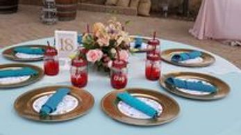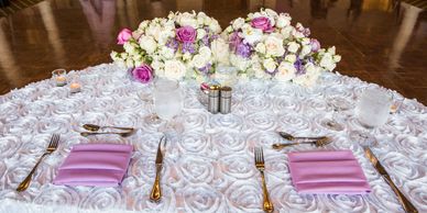 Our Full-Service package includes all linen, some dinnerware/glassware, charger plates, delivery, set up and pickup. Call for details!